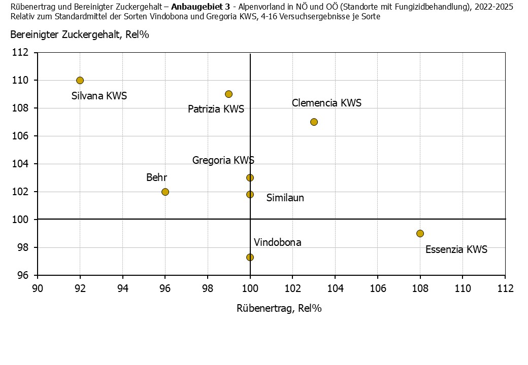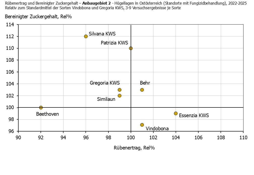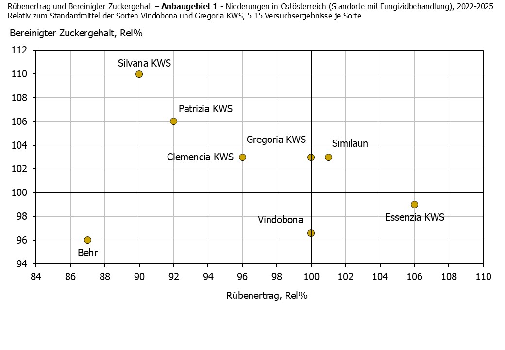 Die Leistungsmerkmale Rüben- und Zuckerertrag, Zuckergehalt, bereinigter Zuckergehalt, bereinigter Zuckerertrag und Standardmelasseverlust (nach Braunschweiger Formel) wurden in Zusammenarbeit mit der Agrana Research & Innovation Center GmbH (ARIC) und dem Rübenlabor der Zuckerfabrik Leopoldsdorf ermittelt.